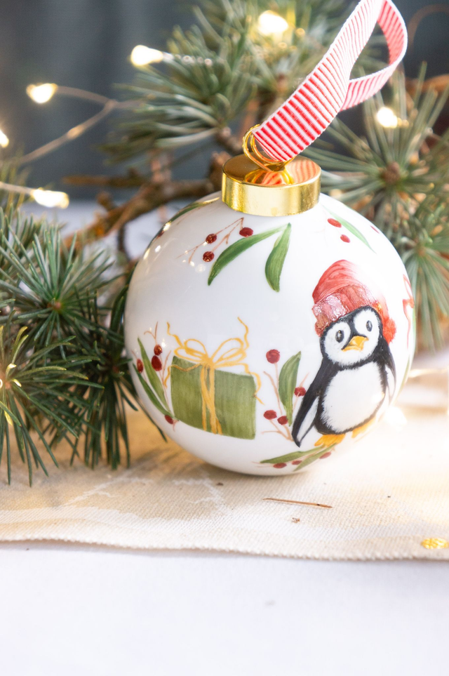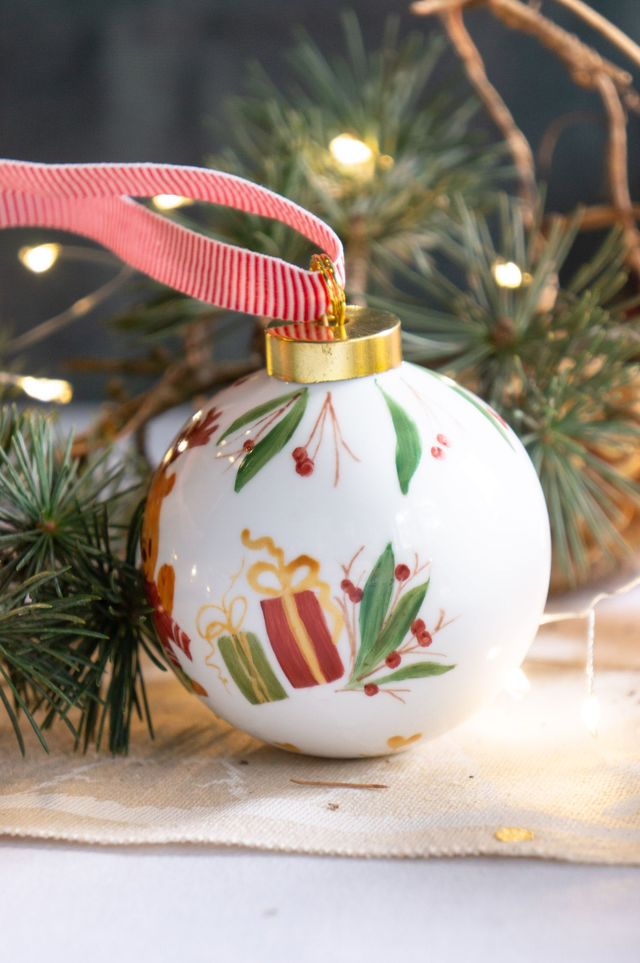 Chaque boule est entièrement peinte à la main dans mon atelier, selon les techniques traditionnelles de la peinture sur porcelaine.
