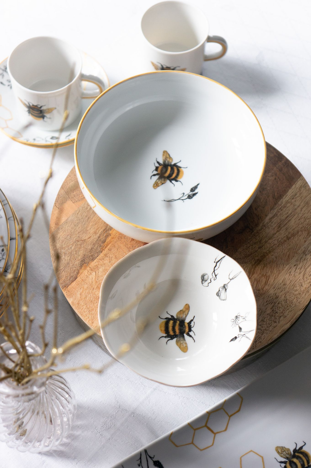 Petite coupelle en porcelaine fine, décorée entièrement à la main dans la Collection L’Or des Abeilles.